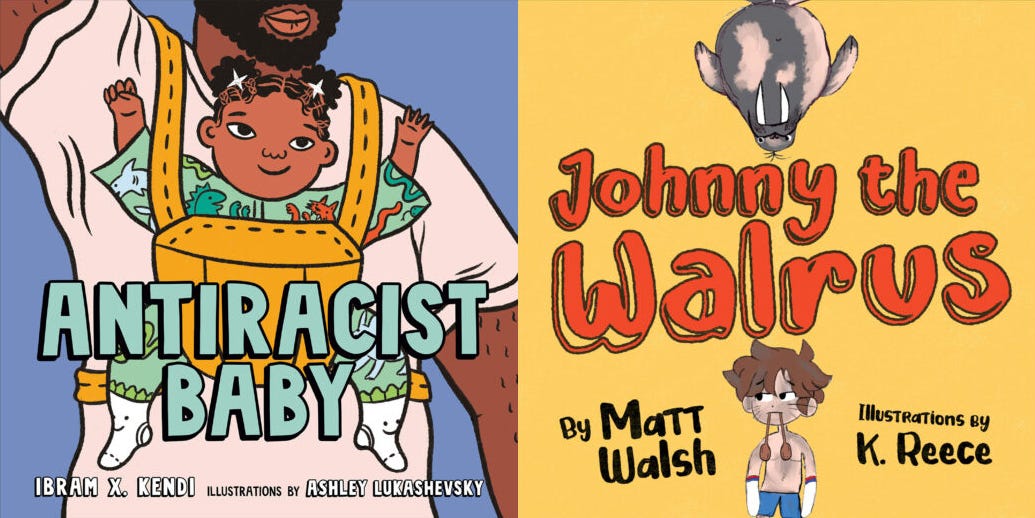 In the same way, Matt Walsh’s own children’s book “Johnny the Walrus”, is very basic in its lesson, much like the woke books that this one stands against such as Ibrahim X. Kendi’s “Antiracist Baby”.