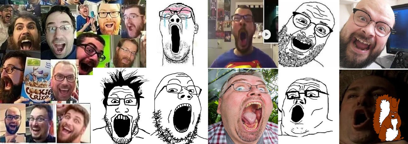 This meme caught on with my guest Ben Avery (former producer of The Tim Dillon Show) who starts every episode of his new rapidly growing comedy podcast “Lemon Party” by making the Soy Face. As he explained to me along with Uberboyo and Gnostic Informant, Ben makes this face out of a sense of detestment for what the Soyjack represents: